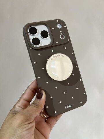 Tipo: antigolpe con popsockets.Material: tpu flexible.Color: marrón y puntos beige.LA IMAGEN SOLO ES DE REFERENCIA, DISPONIBLE PARA EL IPHONE DE ESTA SECCIÓN.