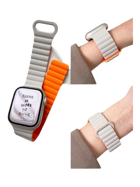 Tipo: correa apple watch imantada reversible.Material: silicon.Color: beige y naranja.