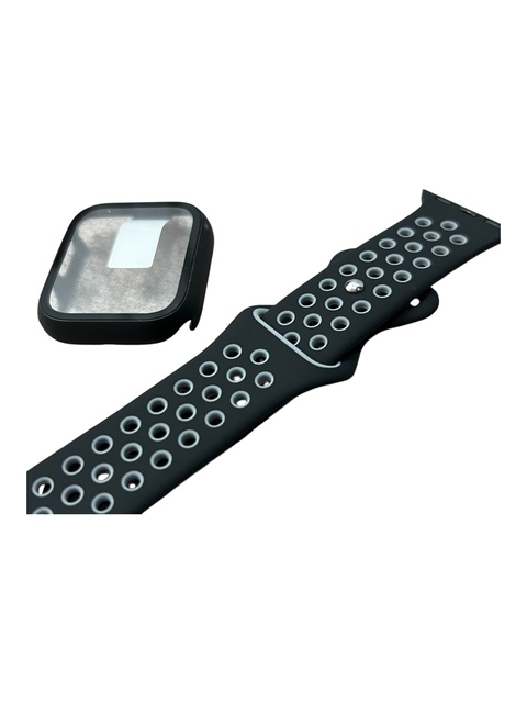 Tipo: correa apple watch con bumper.Material: silicon.Color: negro y gris.