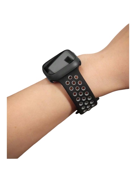 Tipo: correa apple watch con bumper.Material: silicon.Color: negro y gris.