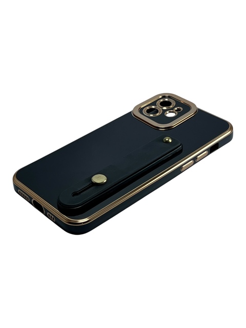 Tipo: con soporte.Material: TPU flexible.Color: Negro con dorado.