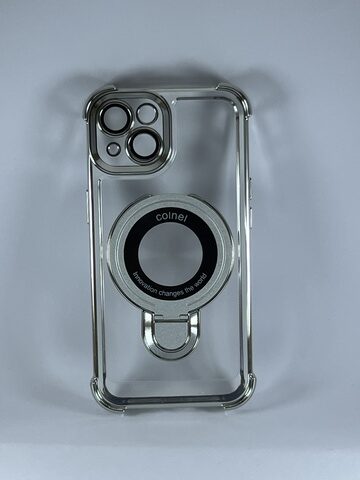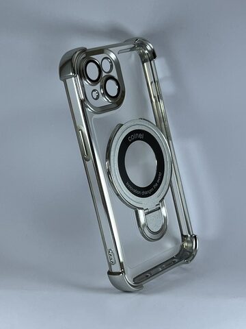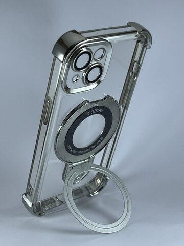 Tipo: Case con soporte magsafe.Material: TPU duro.Color: transparente con plateado.