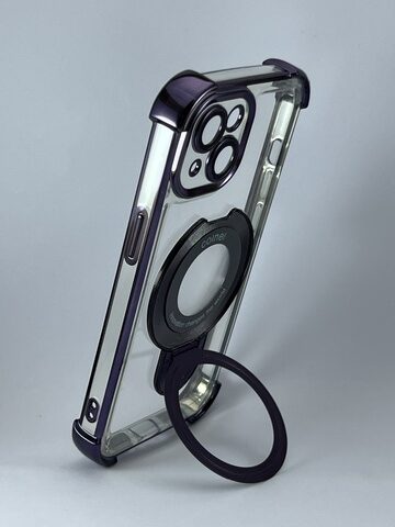 Tipo: case con magsafe soporte.Material: Tpu duro.Color: Transparente con morado.