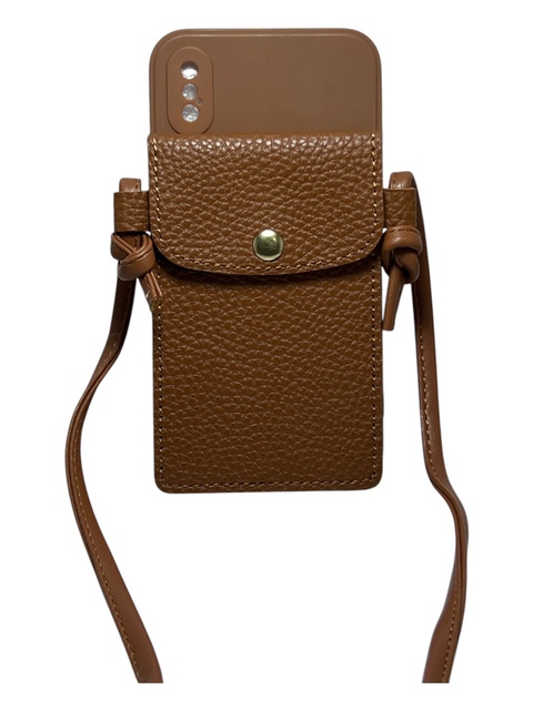 Tipo: Case con strap. Material: TPU flexible y cuero sintetico.Color: marrón.